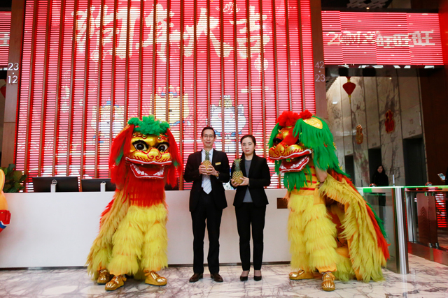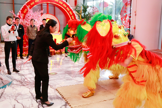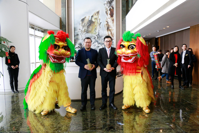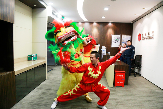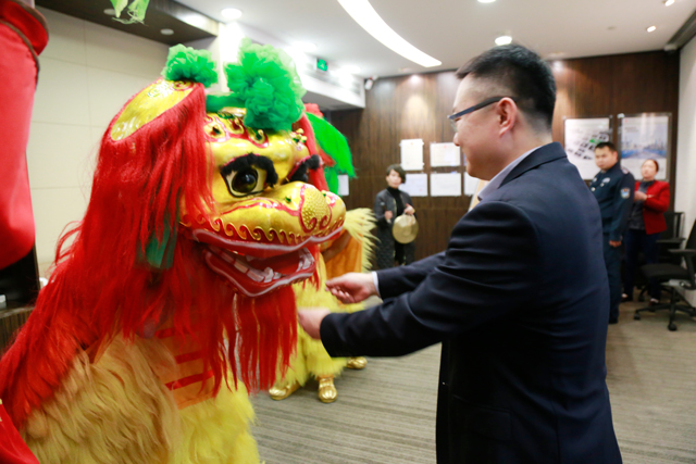 ? ? ? ? 大堂的醒狮仪式完成之后,,,,,,,舞狮队还进入厦门财富中心各入驻企业、单位巡游,,,,,,,为他们带去旺旺的福运。。。。。。舞狮队的到来,,,,,,,为财富中心各企业在新春呈上美好祝愿,,,,,,,也同时受到各企业的热烈响应,,,,,,,争相同舞狮队合影留念,,,,,,,期望记录下这些充满喜庆的精彩瞬间。。。。。。