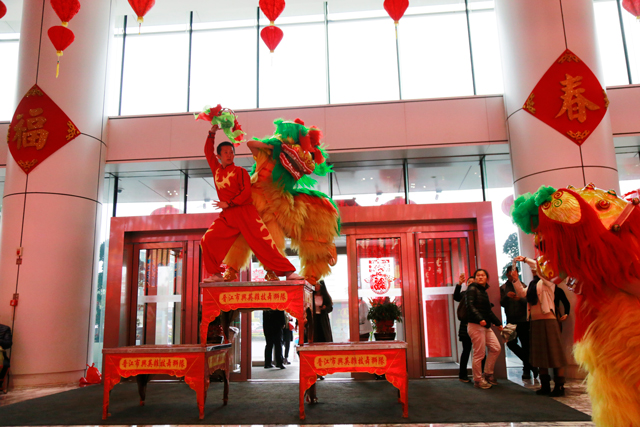 ? ? ? ? 2月24日(农历正月初九),,,,,,,厦门财富中心新年开工舞狮祈福表演在一楼大堂隆重举行。。。。。。以中国民俗“醒狮贺岁”,,,,,,,预示着财富中心新的一年更为吉祥红火,,,,,,,各入驻企业、单位宏图大展。。。。。。