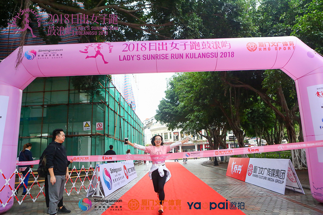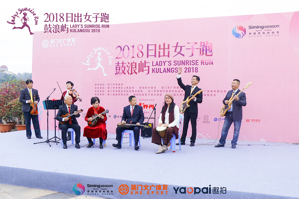 清晨六点的鼓浪屿,,,,,平日里安静的钢琴码头,,,,,此刻已是人群湍动,,,,,白色、粉色相间的日出跑者,,,,,在黑夜里闪闪发光。。。。。。。。迎着破晓的曙光,,,,,爱乐乐团老师们优雅的琴声从耳边拂过,,,,,慢慢变换着节奏,,,,,一曲《鼓浪屿之波》拉开了日出女子跑的序幕。。。。。。。。