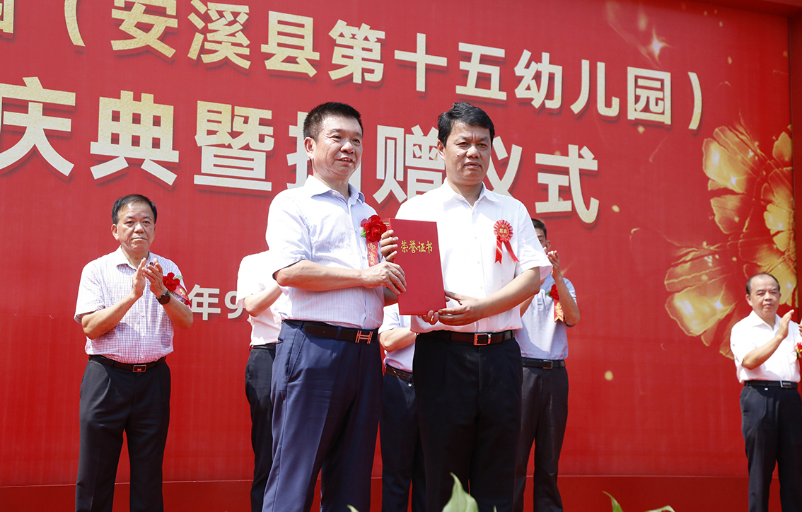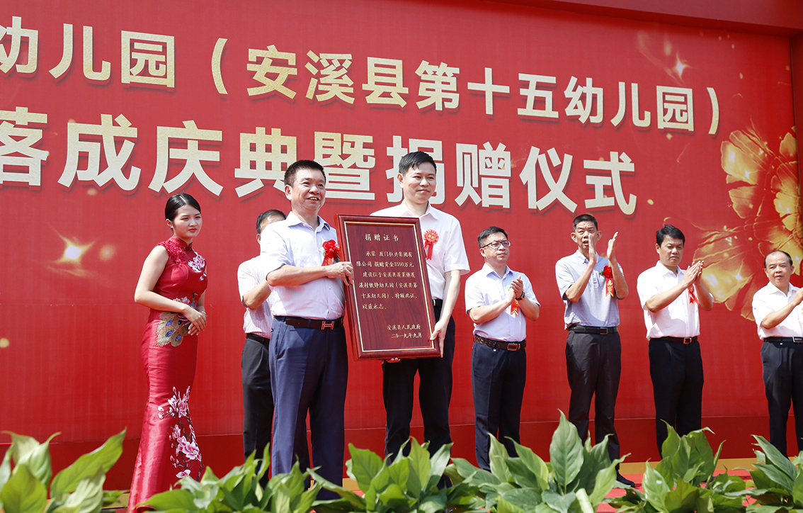 ÏÃÃÅ×ðÁú¿Ê±¼¯ÍŶʳ¤¿ÂϣƽÔÚÖ´ÇÖбíʾ£º¡°ÎÒÒª¸ÐлËùÓÐΪÌúï£Ó×¶ùÔ°µÄµ®ÉúÌíש¼ÓÍߵİ²ÏªÏØÎ¯¡¢ÏØÕþ¸®¡¢ÏØÖ±¸÷²¿ÃÅ¡¢Õòµ³Î¯¡¢ÕòÕþ¸®¡¢ÅîϪ´åÁ½Î¯£¬£¬£¬£¬£¬ÒÔ¼°Éè¼Æ¡¢½¨Ôì¡¢¼àÀíµÈ»·½ÚµÄÈËÔ±£¬£¬£¬£¬£¬¸ÐлΪÓ×¶ùÔ°µÄµãµãµÎµÎ¹±Ï×ÐÄÁ¦µÄ¸¸ÀÏÏçÇ×£¬£¬£¬£¬£¬Ëä˵Ó×¶ùÔ°ÊǼҸ¸ºÍ×ðÁú¿Ê±¼¯ÍžèÔùÐ˽¨£¬£¬£¬£¬£¬µ«´ó¼ÒÒ»Æð³É¾ÍÁËÕâÑùÒ»ËùÃÀÀö¶øÏÖ´ú»¯µÄÓ×¶ùÔ°¡£¡£¡£¡£¡£¡£¡£½øÀ´Ð¡Ñ§¡¢½øÀ´ÖÐѧ(°²Ïª°ËÖÐ)¡¢Ìúï£Ó×¶ùÔ°¡¡ÕâÒ»×ù×ùУ԰µÄÐ˽¨¡¢Éý¼¶£¬£¬£¬£¬£¬ÕýÊÇÒ»´ú´úÏçÏͲ©°®ºÃÊ©£¬£¬£¬£¬£¬¸Ð¶÷»ØÀ¡µÄ½á¹û£¬£¬£¬£¬£¬Ê¹ÅîϪ´å³ÉΪÃû²»Ðé´«µÄѧ´å¡£¡£¡£¡£¡£¡£¡£½ñÌ죬£¬£¬£¬£¬ÎÒ´ú±íÏÃÃÅ×ðÁú¿Ê±¼¯Íż°¼Ò×壬£¬£¬£¬£¬Õýʽ°ÑÌúï£Ó×¶ùÔ°ôß°²ÏªµÚÊ®ÎåÓ×¶ùÔ°¾èÏ׸ø°²ÏªÏØÕþ¸®£¬£¬£¬£¬£¬×÷Ϊ°²ÏªÏصÄÈ«ÈÕÖÆ¹«°ìÓ×¶ùÔ°½øÐаìѧ£¬£¬£¬£¬£¬ÏàÐÅÔÚ°²ÏªÏع«°ì½ÌÓýÐòÁÐÕâ¸öÆÅ¼Ò£¬£¬£¬£¬£¬ËýÄÜ»ñµÃ¸üºÃµÄºÇ»¤£¬£¬£¬£¬£¬¾Àú¸üºÃµÄ³É³¤£¬£¬£¬£¬£¬³ÉΪ°²ÏªÓ×¶ù°ìѧµÄµä·¶¡£¡£¡£¡£¡£¡£¡£¡±