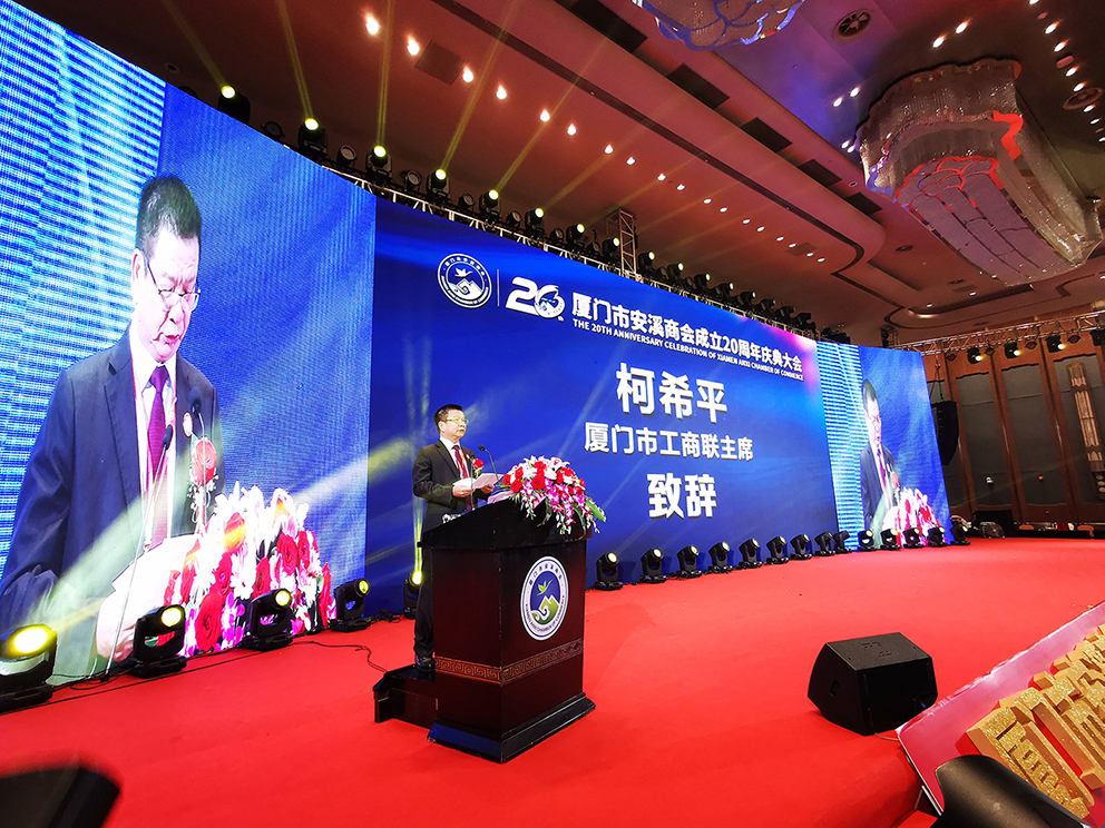 柯希平先生代表厦门市工商联出席庆典活动,,,,,,,他在致辞中表示:“安溪商会在历届会长带领下,,,,,,,在历届班子成员的共同努力下,,,,,,,取得了卓有成效的办会成果,,,,,,,商会的凝聚力和影响力不断提高。。。。。我对厦门市安溪商会怀有深厚的感情,,,,,,,看着在厦安溪乡贤及会员企业一年年发展进步,,,,,,,我感到由衷的高兴。。。。。广大安溪籍企业家立足本份、诚信经营,,,,,,,取得了卓有成效的发展成果,,,,,,,这一切,,,,,,,极大改变了安溪人在厦门的形象;如今,,,,,,,厦门市安溪商会已经成为厦门市较具影响力的商业社团之一,,,,,,,在厦安溪人和广大安溪籍企业家的社会影响力和认可度也得到了极大的提升。。。。。”
