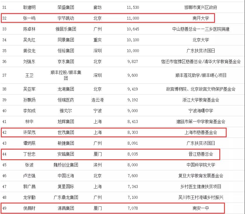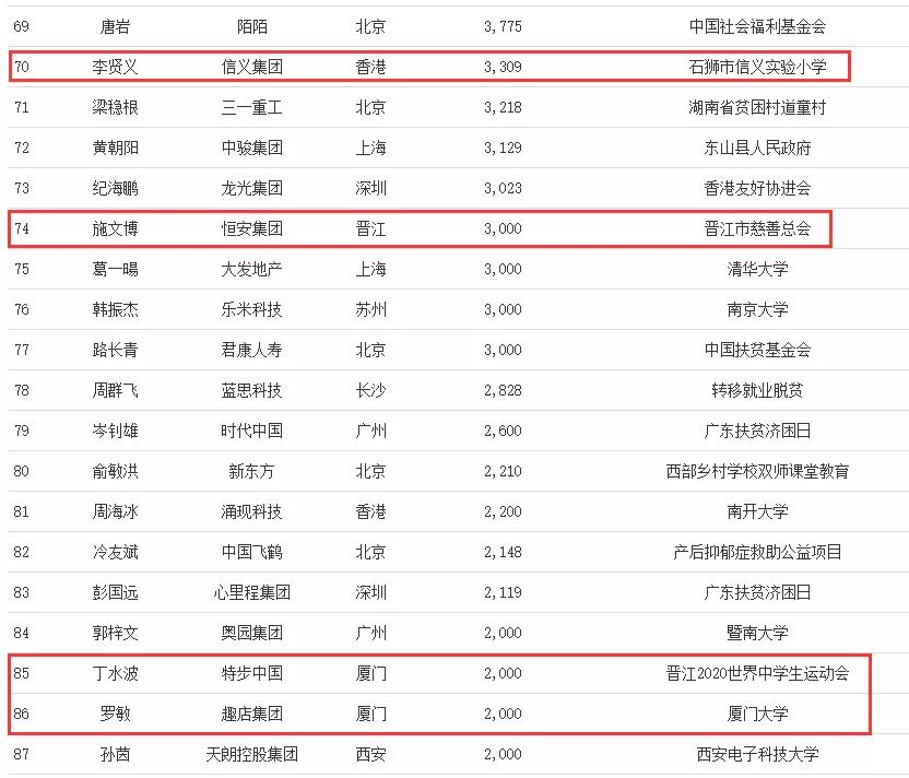 根据福布斯官方介绍,,,,,过去三年的榜单数据显示,,,,,有29位企业家连续三年荣登慈善榜,,,,,这29位慈善企业家的合计捐赠金额高达326亿元。。。。。。