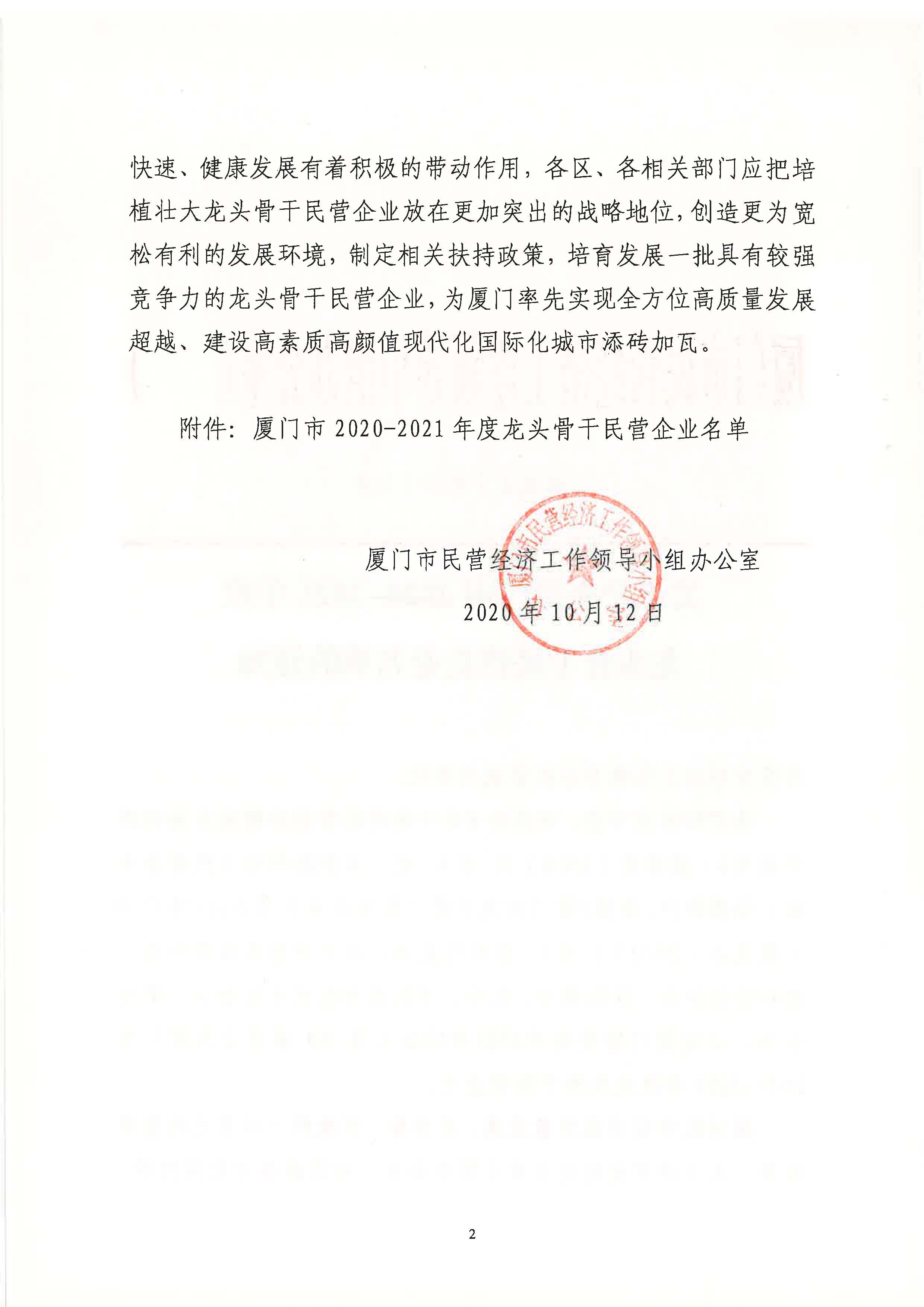 ÈÕǰ£¬£¬£¬£¬£¬£¬£¬£¬ÏÃÃÅÊÐÃñÓª¾¼Ã¹¤×÷Á쵼С×é°ì¹«ÊÒÏ·¢¡¶¹ØÓÚ¹«²¼ÏÃÃÅÊÐÄê¶ÈÁúÍ·¹Ç¸ÉÃñÓªÆóÒµÃûµ¥µÄ֪ͨ¡·£¬£¬£¬£¬£¬£¬£¬£¬ÏÃÃÅ×ðÁú¿Ê±¼¯ÍÅ×÷ΪÆäËûÏÖ´ú·þÎñÒµÆóÒµ£¬£¬£¬£¬£¬£¬£¬£¬»ñµÃ¡°ÏÃÃÅÊÐÄê¶ÈÁúÍ·¹Ç¸ÉÃñÓªÆóÒµ¡±³ÆºÅ¡£¡£¡£¡£¡£¡£