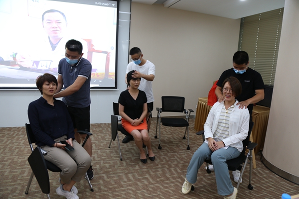 讲座结束后,,,,,,,大家纷纷参与现场中医养生体验,,,,,,,在座的白领大多数都是整天伏案工作,,,,,,,或是长时间对着电脑,,,,,,,难免颈肩背出问题,,,,,,,而中医理疗方法就是对付颈肩背问题的最好的方法。。。。。