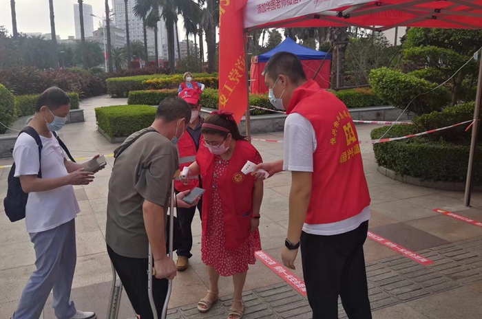 疫情当前,,,,,,,,真的很希望自己能做点什么,,,,,,,,正好看到集团招募志愿者,,,,,,,,就参加了。。。。。。。我做志愿者的那天是9月15日下午,,,,,,,,在那做核酸引导员,,,,,,,,那会儿因为下了一场雨,,,,,,,,已经算很凉快。。。。。。。我自己去海滨公园点进行采样时,,,,,,,,看到很多医护人员特别辛苦,,,,,,,,天气热太阳晒,,,,,,,,他们都是汗流浃背的,,,,,,,,很心疼。。。。。。。所以我知道那些工作人员比我支援的几个小时辛苦多了。。。。。。。