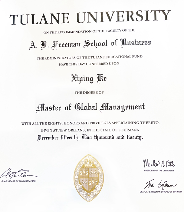 近日,,,,,,厦门尊龙凯时集团董事长柯希平先生从厦门大学-杜兰大学GEMBA第四届顺利毕业,,,,,,获杜兰大学授予全球管理硕士学位。。。。。因疫情原因,,,,,,毕业典礼由杜兰大学委托厦门大学举办,,,,,,厦门大学常务副书记李建发出席毕业典礼,,,,,,并亲自颁发学位证书。。。。。